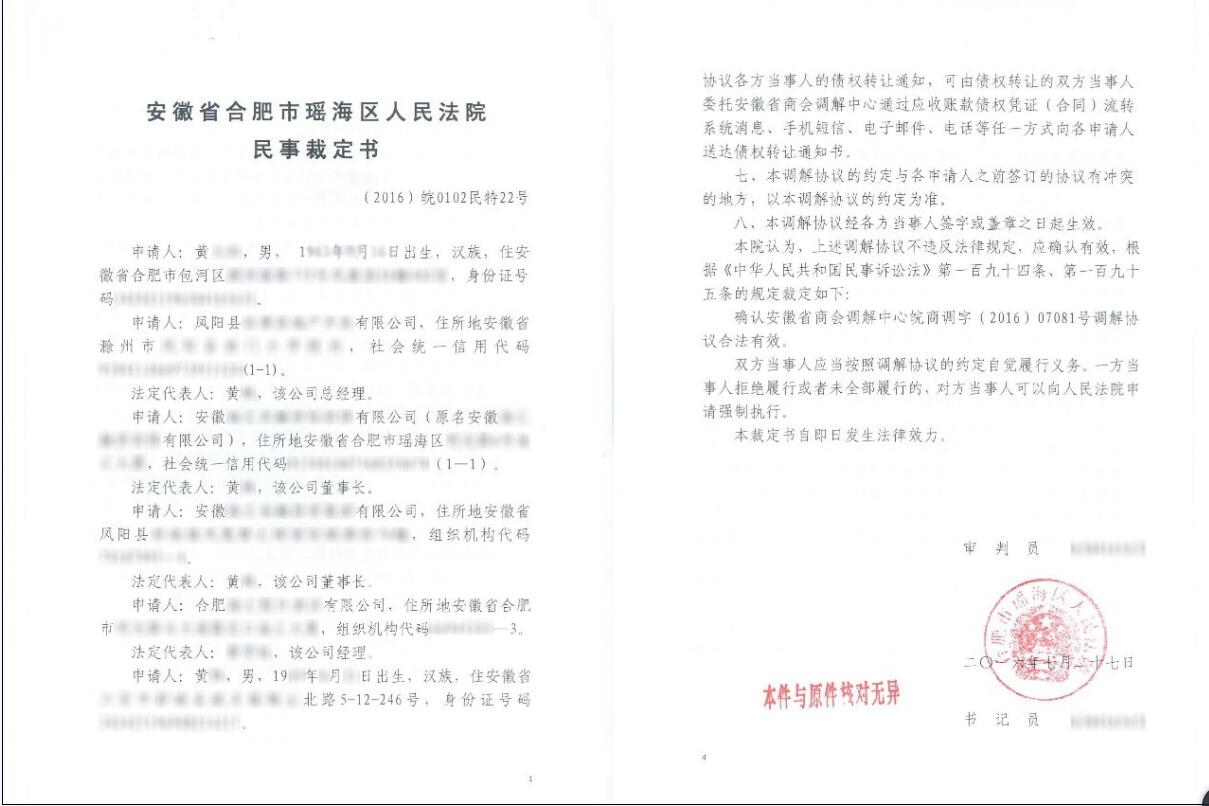 司法护航债务链分摊化解债务 破解“融资难、融资贵”案例 2016年6月15日,国新办新闻发布会披露,截至2015年底,中国债务总额168.48万亿元人民币,全社会杠杆率249%;纳入预算管理的中央政府债务10.66万亿元,地方政府债务16万亿元,合计政府债务26.66万亿元,占GDP比重39.4%。 随着发展压力增大,债务矛盾最终可能在民商事案件和银行不良贷款数据中显现。例如,2015年末,全国法院新收一审案件首次突破千万件,同比增幅接近2014年的3倍,申请执行标的额达1.7万亿元。2016年一季度末,全国银行业不良贷款余额达2.1万亿。 2016年6月29日,最高人民法院发布《关于人民法院进一步深化多元化纠纷解决机制改革的意见》(法发〔2016〕14号),进一步要求“推广现代信息技术在多元化纠纷解决机制中的运用”。 人民法院推广现代信息技术在多元化纠纷解决机制中的运用,以商事调解、人民调解、行业调解等调解组织为平台,由调解组织依据当事人的申请,根据人民法院生效的民事判决书、民事调解书或确定调解协议的民事裁定书等相关法律文书确定的应收账款债权,应用国家科技支撑计划“基于债权流转的新一代电子支付服务体系研发及应用示范”的应收账款债权凭证(合同)流转系统,出具统一制式的并由人民法院签章的应收账款债权凭证(合同),促进应收款债权流转、抵消和系统大数据优化匹配。 债权转让过程中,每个转让人可以协商向调解组织指定的银行专用账户缴存不低于所转让债权数额1%的代偿款(或保证金),为债权受让人最终实现债权增强保障,最终实现债务链分摊化解债务纠纷,减少当事人诉累,破解执行难。 2016年7月20日,合肥一债权人黄某因长期无法实现债权,抱着“试试看”的态度,接受了债务人某房产公司持有的记载50万元债权的应收账款债权凭证(合同),黄某受让债权后,又转让给了其他债权人,冲抵了自己的债务,解决了自己的50万元债权债务纠纷。 2016年7月20日,黄某找到该房产公司说:“为了促进债权流转抵销,经与我的债权人沟通,他们均自愿在每次转让时,缴纳所转让债权数额1%的保证金,如1万元的债权,每次转让时有100元存入调解组织或人民法院指定银行的专门账户,如果流转了90手,该专户中就有9000元,如果流转100手,最终持有人通过领取保证金款就可以全额实现债权。”于是,黄某要求将剩余的359万元债权也开具成多张小额的应收账款债权凭证(合同)进行流转。 2016年7月21日,黄某、房产公司及其追加的合肥某公司等担保人,向安徽省商会调解中心申请调解,并最终达成《调解协议》(皖商调字〔2016〕07081号),各方一致同意通过应收账款债权凭证(合同)流转抵付(销)方式,化解债权债务纠纷。 2016年7月25日,上述各方当事人向合肥市瑶海区人民法院申请对《调解协议》进行司法确认。法院受理后,依法适用简易程序进行审理,并于2016年7月27日审理终结,确认《调解协议》有效,依法出具“(2016)皖0102民特22号”《民事裁定书》,该民事裁定书具有强制执行力。 2016年8月1日,黄某依据生效的民事裁定书向安徽省商会调解中心先期申请开具了多张小额的共计359万元的应收账款债权凭证(合同),用于对外流转抵付(销)债务。各参与主体分别在凭证(合同)签章明确: 1、人民法院盖章确认:本凭证(合同)所依据的民事裁定书系我院根据当事人双方在安徽省商会调解中心达成的调解协议作出,具有强制执行效力。 2、安徽省商会调解中心盖章确认:初始债权人和债务人(有第三方担保的,还包括初始担保人)已在本商会调解中心的调解和见证下,达成债权债务调解协议。调解协议字号:皖商调字〔2016〕07081号。 3、初始债务人(房产公司)盖章确认:本凭证(合同)记载的应收账款债权,可等额抵付对本人(单位)的购货款、服务款等各项应付款。 4、初始担保人(合肥某公司)盖章确认:本人(单位)对本凭证(合同)记载的应收账款债权予以连带担保,持有权利人可等额抵付对本人(单位)的购货款、服务款等各项应付款。 5、初始债权人(黄某)盖章确认:本人(单位)在转让本债权时,自愿向安徽省商会调解中心托管账户缴存本凭证(合同)记载应收账款债权金额1%的预付代偿款(或保证金),并承诺对本凭证(合同)记载的应收账款债权的最终持有人在抵付到期日到期后未能实现抵付承担连带保证责任,但债务人或初始担保人成为债权受让人时除外。本债权可等额抵付对本人(单位)的各项应付款。 黄某拿到凭证(合同)后说:“我现在是困难,如果我资金情况好转,5%的保证金我都愿意交,一是低于融资成本,二是加快流转,债权人更愿意接受,20手流转就可让最终持有人实现债权,增强流转参与积极性”。 |